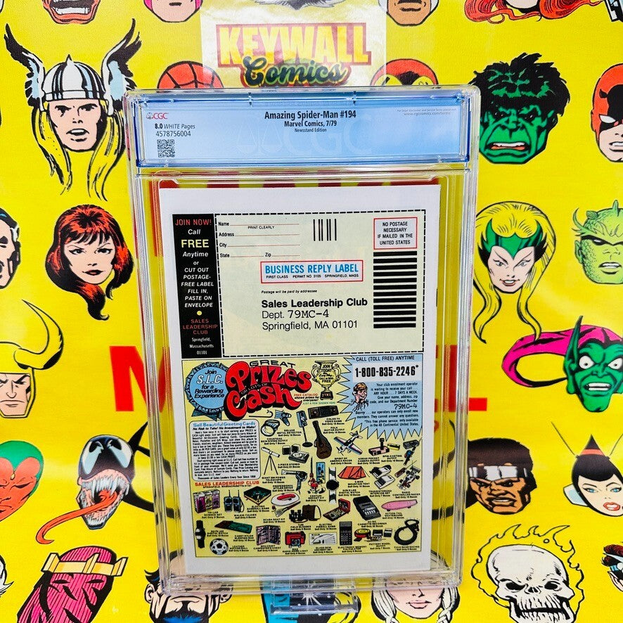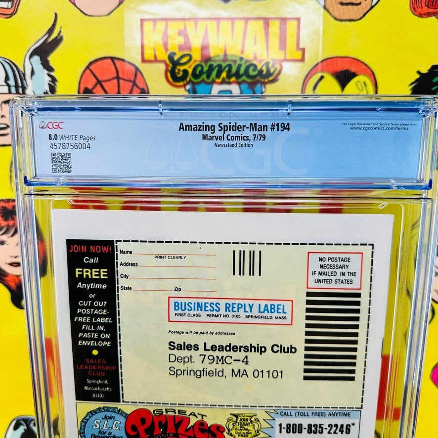 Amazing Spider-Man #194 CGC 8.0 Mark Jewelers Insert Variant 1st Black Cat 1979